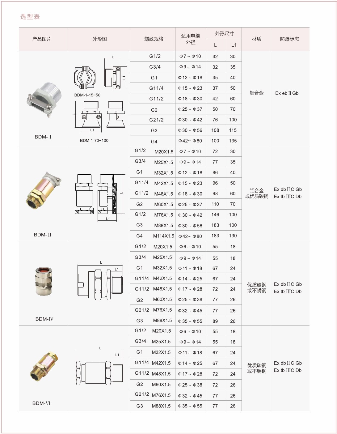 BDM係列防爆電纜夾緊密封接頭