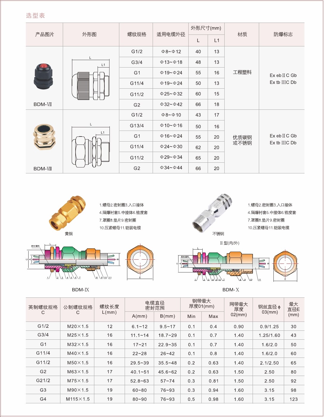 4.Ⅸ、X型產品可用於夾緊鎧裝電纜;