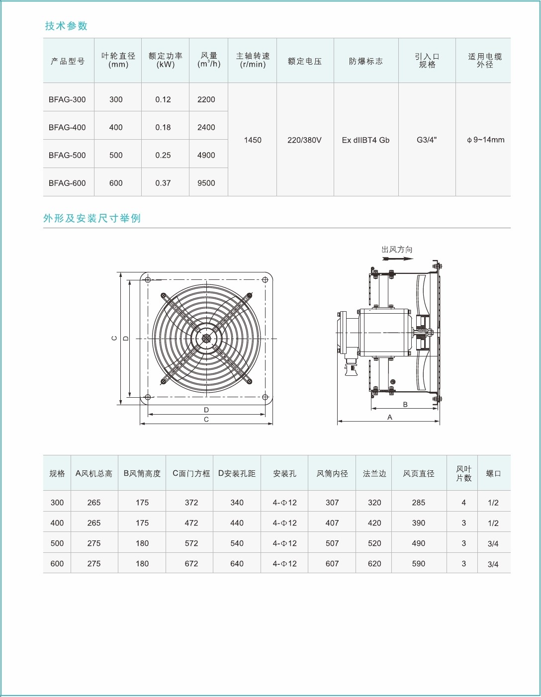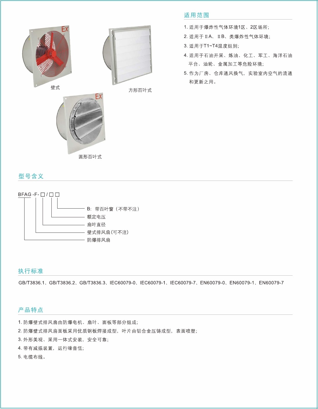 1.防爆壁式排風扇由防爆電機、扇葉、麵板等(děng)部分組成;