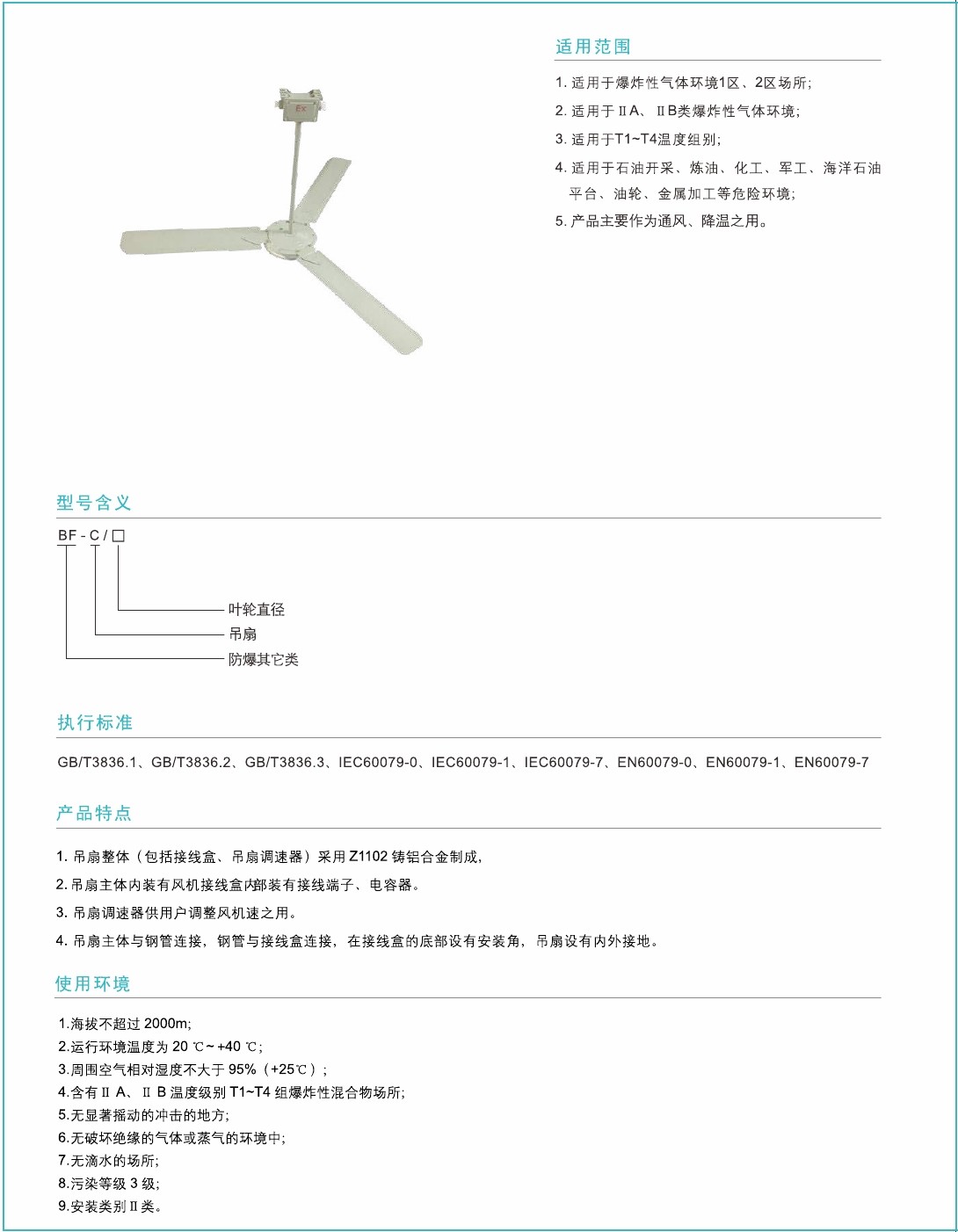 1.吊扇整體(包括接線盒、吊(diào)扇調速器)采用Z1102鑄鋁合金製成,