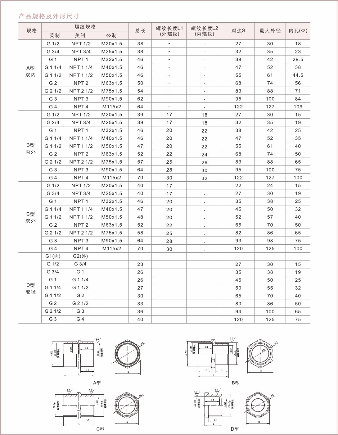 2.螺紋規格可根據用戶要求特製(zhì)或(huò)兩端規格不(bú)同;