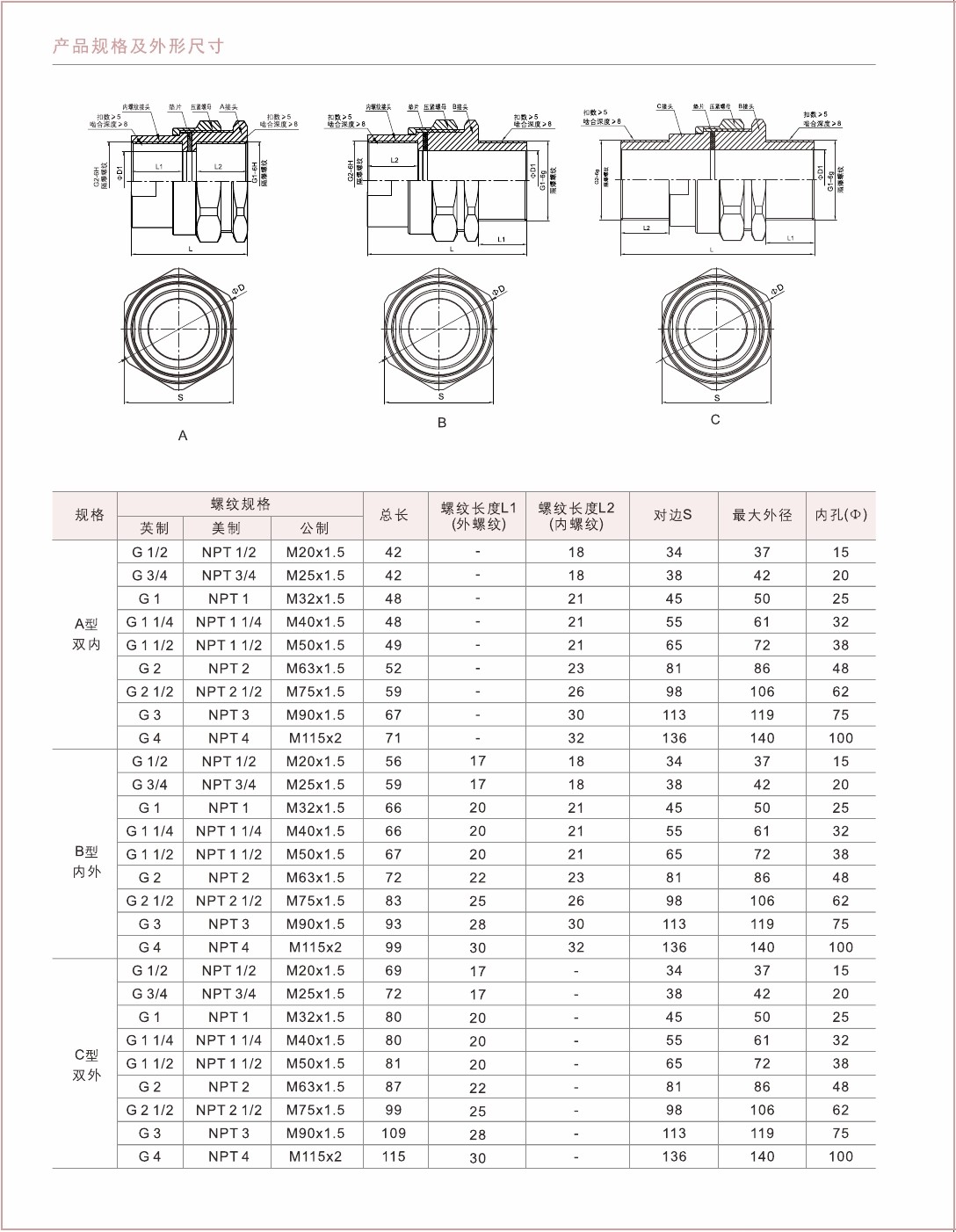 1.采用優(yōu)質碳素(sù)鋼或不鏽(xiù)鋼製(zhì)成,材質可根據用戶(hù)要求采用不(bú)鏽鋼(gāng);2.螺紋規格可根據用(yòng)戶要求特(tè)製(zhì),如NPT、公製紋等;