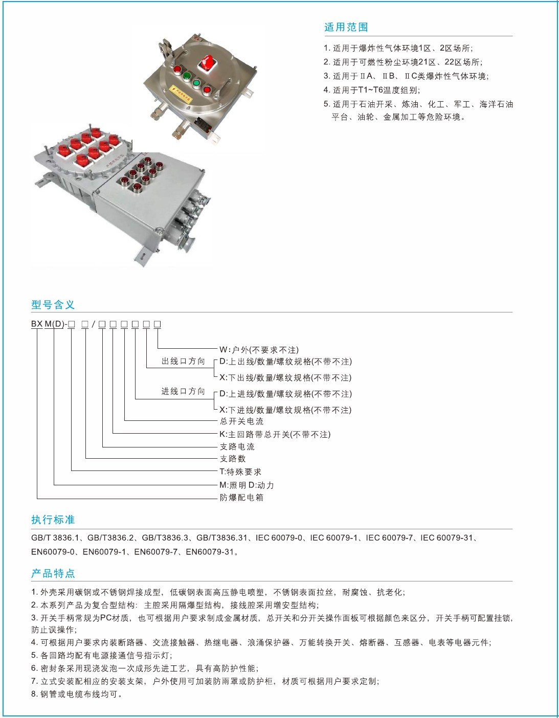3.本係列產品整體為(wéi)複合型結構,開關箱采用隔爆型結構(gòu),接線箱采(cǎi)用(yòng)增安型結構(gòu);