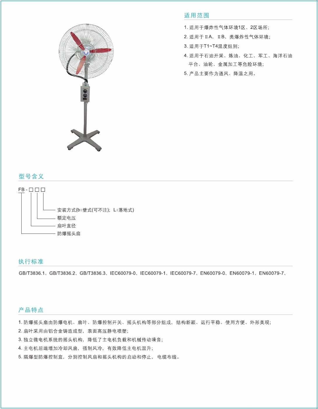 1.防爆搖頭扇由防爆電機、扇葉、防爆控製開(kāi)關、搖頭機構等部分組成,結(jié)構新穎、運(yùn)行平(píng)穩、使用方便、外形美觀;