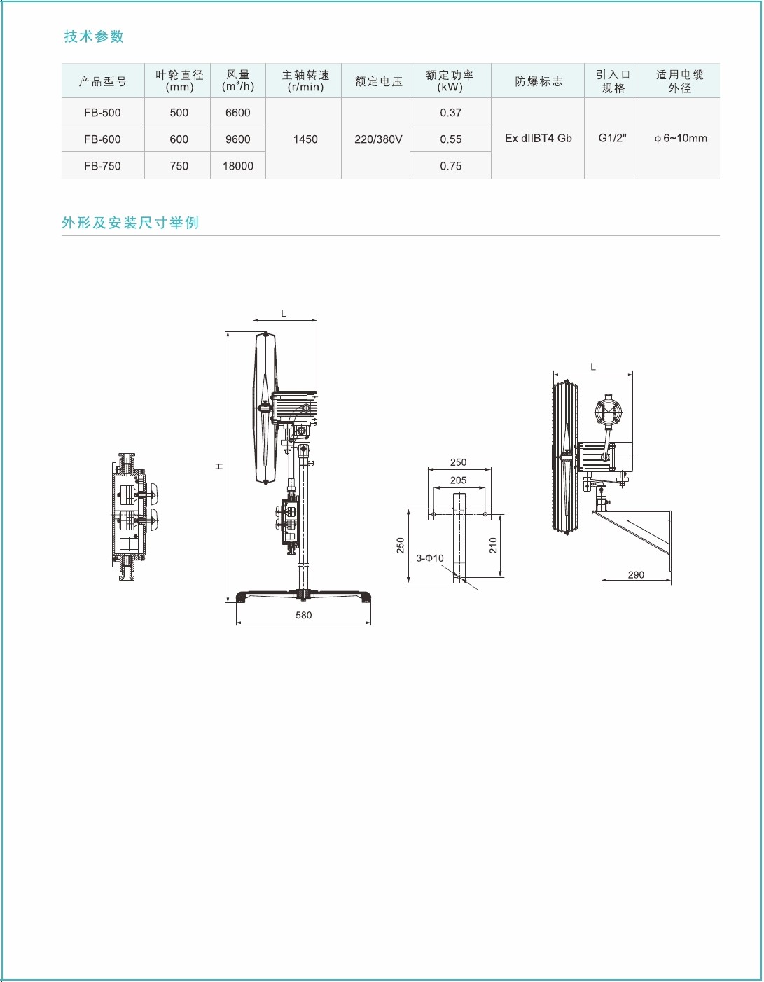 5.隔爆型防爆控製(zhì)盒,分別控(kòng)製風扇和搖頭機構的啟動和停(tíng)止,電纜布線。