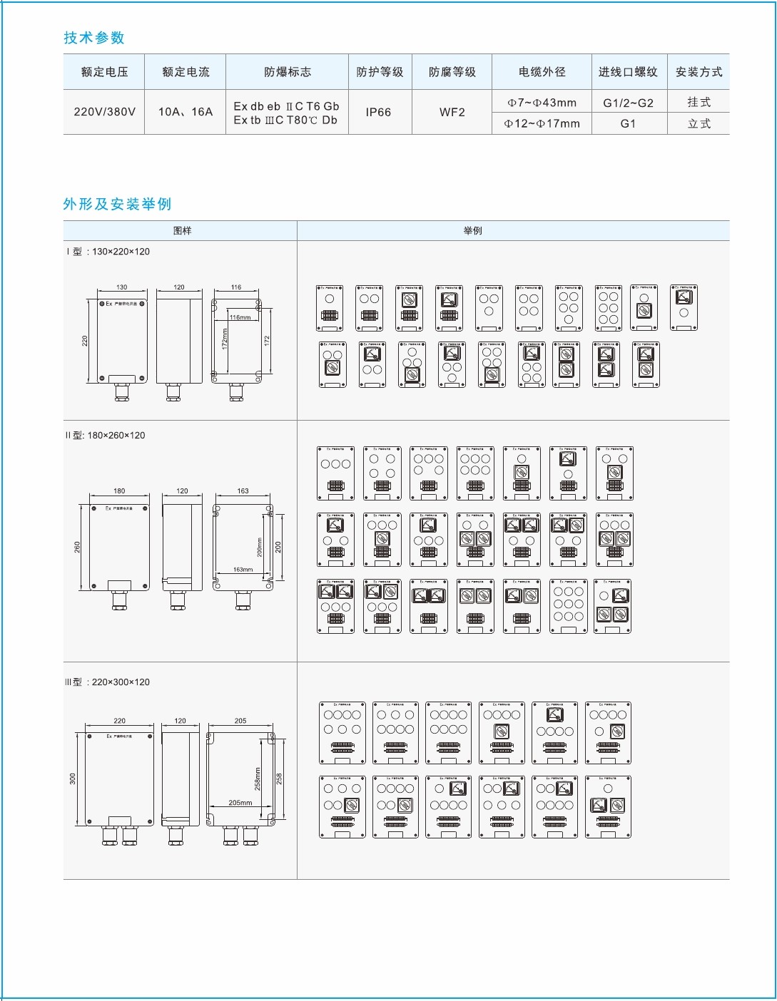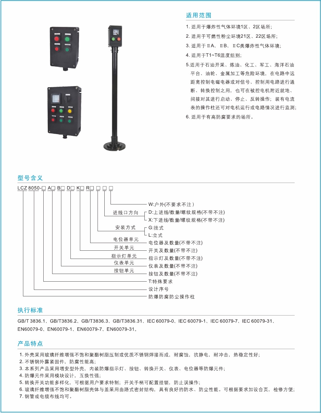 3.本係列產品采用增安型外殼,內裝防指示燈、按鈕、轉換開關、儀表、電位器等防爆元件;